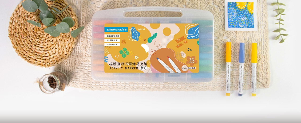 直液式软头丙烯马克笔7.0g 加大墨量续航超 500 米,墨水利用率高达 95%;超大可视墨仓,余量清晰可见。直液式智能控墨出墨均匀,免按压一笔畅涂。软头轻松切换 0.5-9mm 线条,高弹尼龙笔尖丝滑耐用。高纯度颜料鲜艳易叠色,水性无气味快干不透纸,安全可擦,创作超省心。