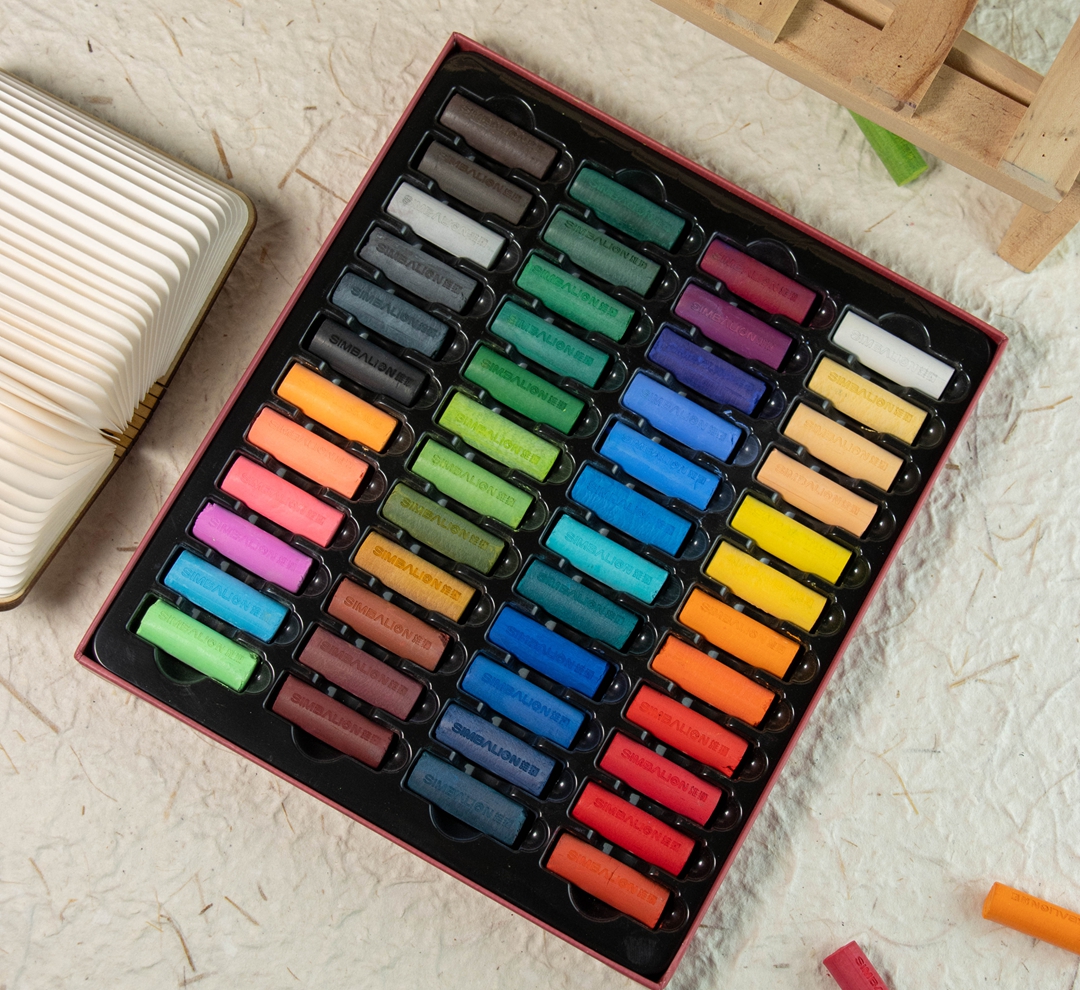 雄狮软性色粉笔采用高纯度颜料与碳酸钙科学配比,质地柔软绵密,落笔如丝般顺滑。无论是直接握持描绘,还是刮取粉末后配合手指、纸擦笔或毛刷进行晕染,都能轻松实现丰富而生动的艺术效果。48种精心调配的色号覆盖常用色系,色彩饱和度高、显色浓郁,可满足从写实到抽象、从素描铺底到完整创作的多样化需求。尤其在深色纸张上使用时,其出色的覆盖力确保叠色不透底,层次清晰分明,为创作者提供更自由、更富表现力的绘画空间。